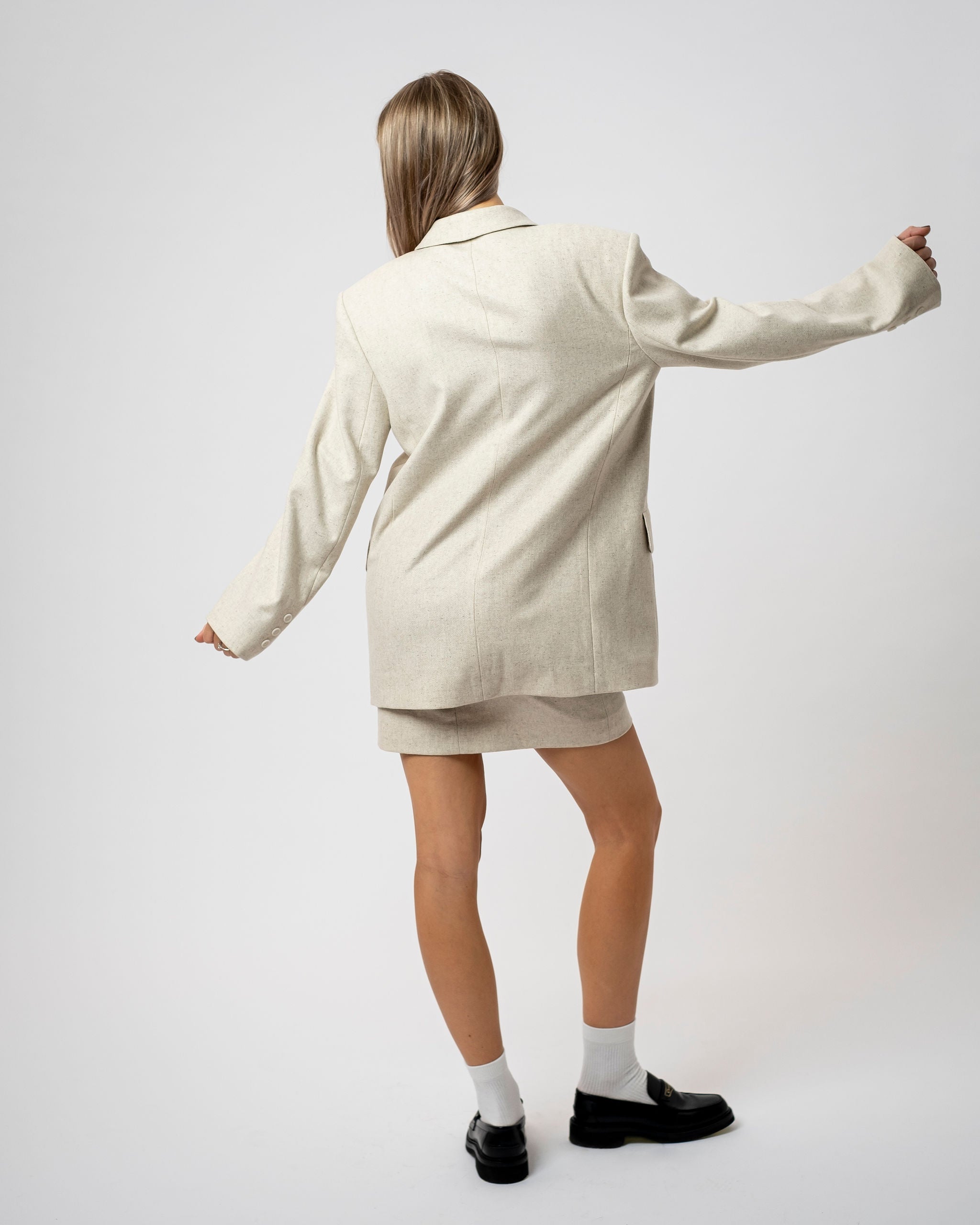 Pintsak Adele on tehtud villasest kalasaba flanellkangast, mis kandmisel aina rohkem voolib end keha järgi, pakub mugavust ja laseb kehal hingata. Rätsepa kvaliteet, klassikaline krae, kolm nööpi ees, kaks taskut, vaba lõige. Pintsaku vooder on naturaalsest viskoosist, mis on siidjalt pehme naha vastas. Universaalne baastoode sinu riidekappi, toetamaks sinu unikaalsust ja stiili.