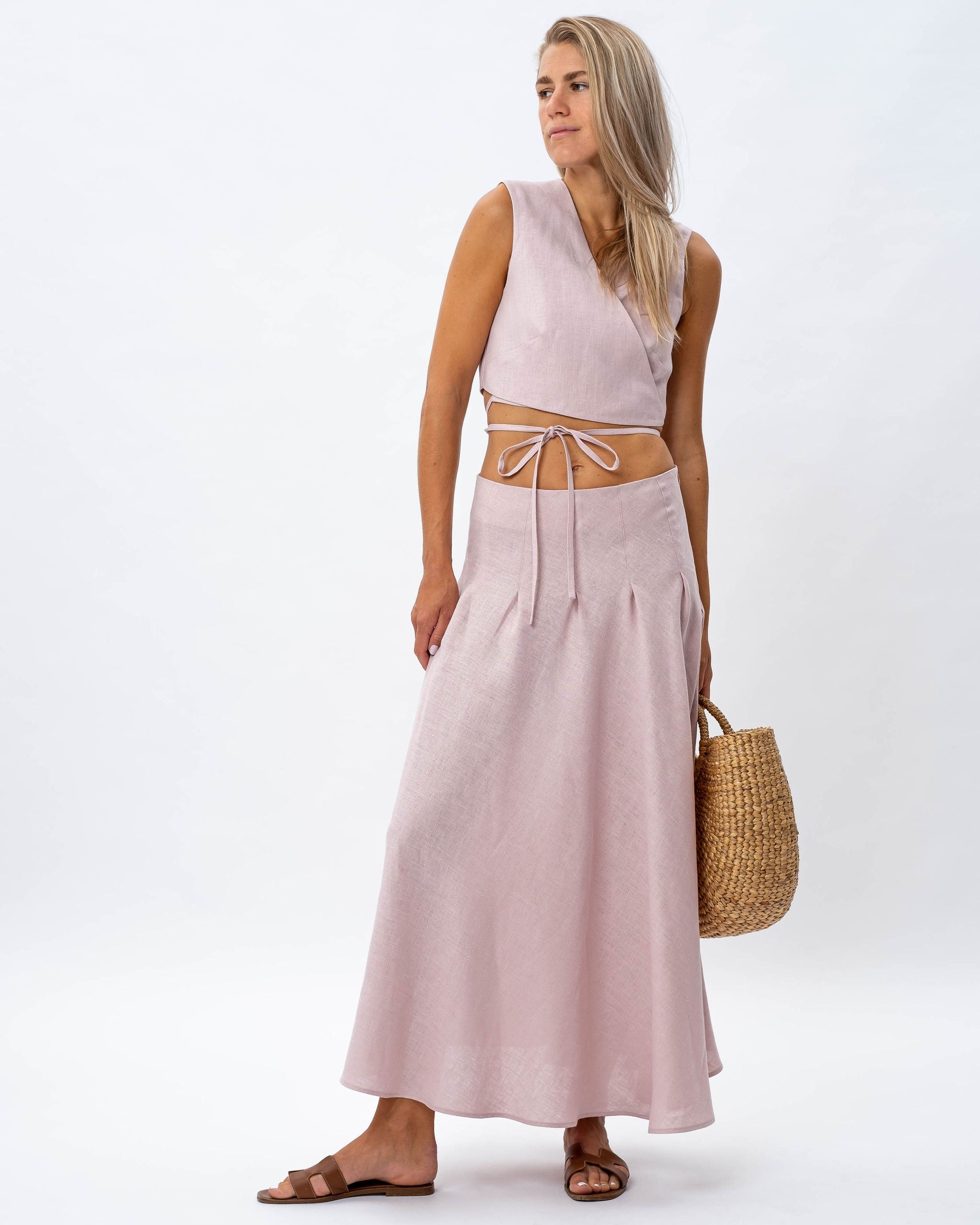 Linane seelik Stina on hea multifunktsionaalne ja minimalistliku disainiga pikk seelik. Loodud pehmendatud linasest kangast, ta on nii mugav kui ka ilusa välimusega. Maxi seelik Stina on A-siluetiga ja see kinnitub vöökohal tõmblukuga. Lisasime seeliku ümber ka sissevõtted, mis annavad seelikule lisaelegantsust.