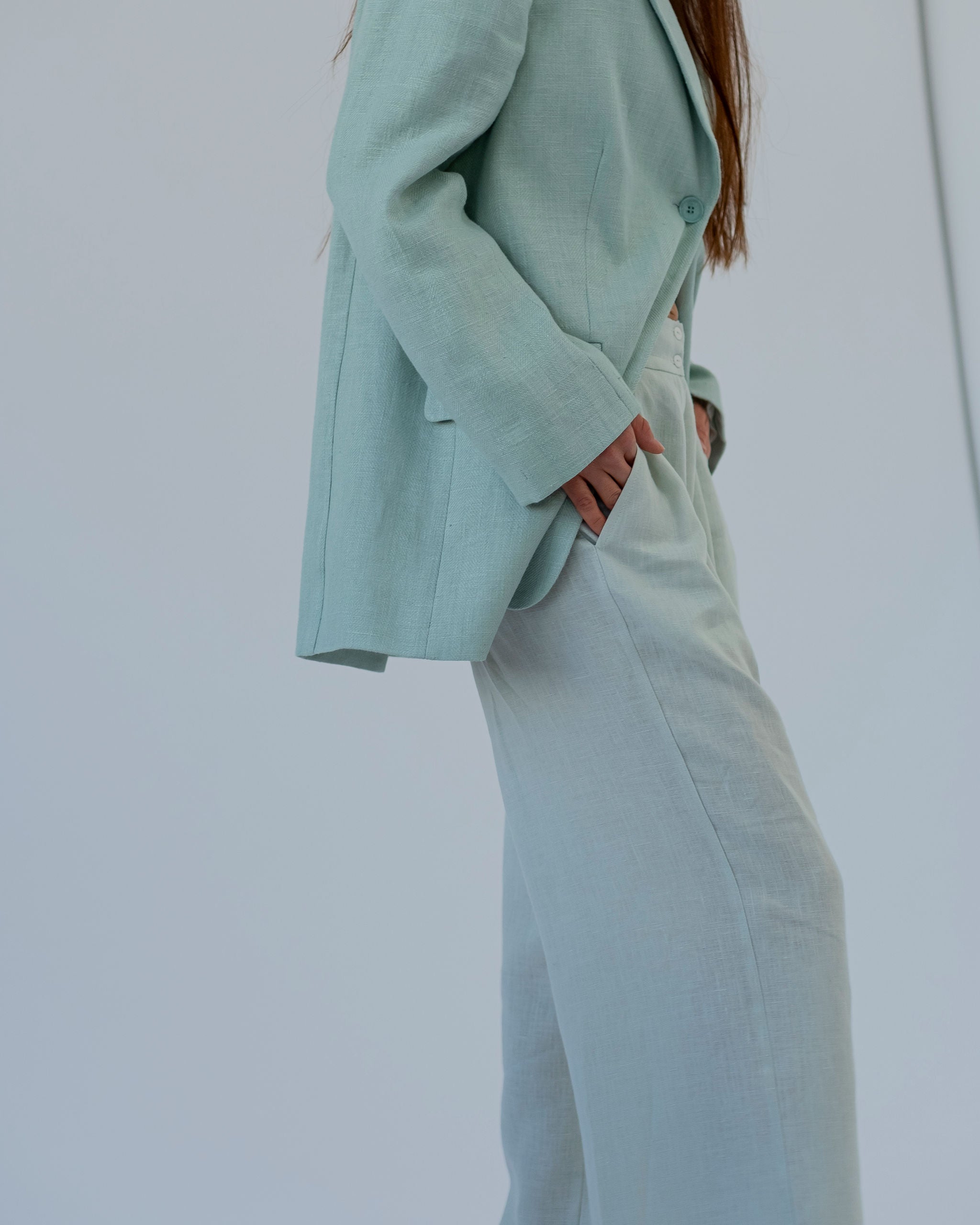 Pintsak Clady on linasest kangast, mis pakub mugavust ja laseb kehal hingata. Rätsepa kvaliteet, klassikaline krae, kolm nööpi ees, kaks taskut, oversize lõige. Pintsaku vooder on naturaalsest viskoosist, mis on siidjalt pehme naha vastas. Universaalne baastoode sinu riidekappi, toetamaks sinu unikaalsust ja stiili.