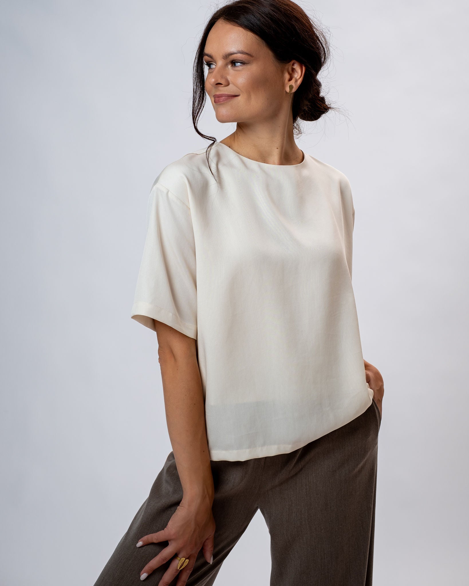Pluus Katie on multifunktsionaalne riideese - selles tunned end mugavalt nii puhkusel kui ka linnatänavatel. Katiet saab kanda erinevates olukordades ning luua sellega erinevaid välimusi. Ta on ajatult moderne ja piisavalt praktiline, et seda kanda kontoris ning lisades sinna mõned ilusad detailid, saab selle muuta imeliseks õhtupluusiks, mida kanda pidulikematel üritustel. Kanna seda teksade või lühikeste pükstega ja tunne ennast alati suurepäraselt.